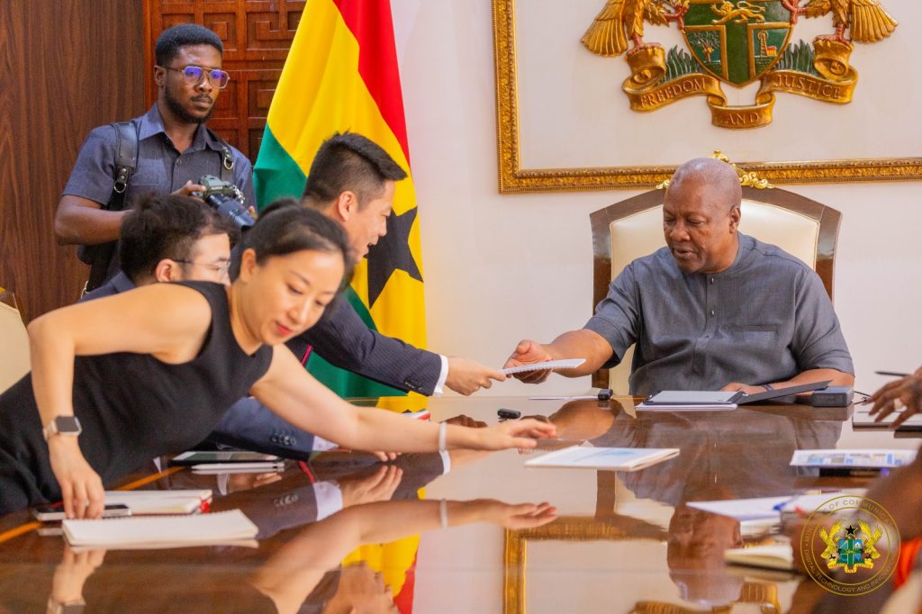 The President of the Republic, H.E. John Dramani Mahama, has received a delegation from Huawei Ghana, led by the company’s Country Director, during a courtesy call at the Jubilee House. The delegation was led by the Minister for Communications, Digital Technology and Innovations, Hon. Sam Nartey George.