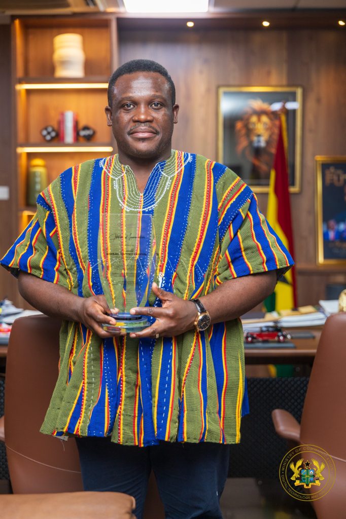 During the visit, Mr. Carlos Amoako, CEO of AlphaVecta Technologies, presented a citation of appreciation to the Honourable Minister in recognition of his visionary leadership and steadfast advocacy for AI innovation in Ghana and across Africa.