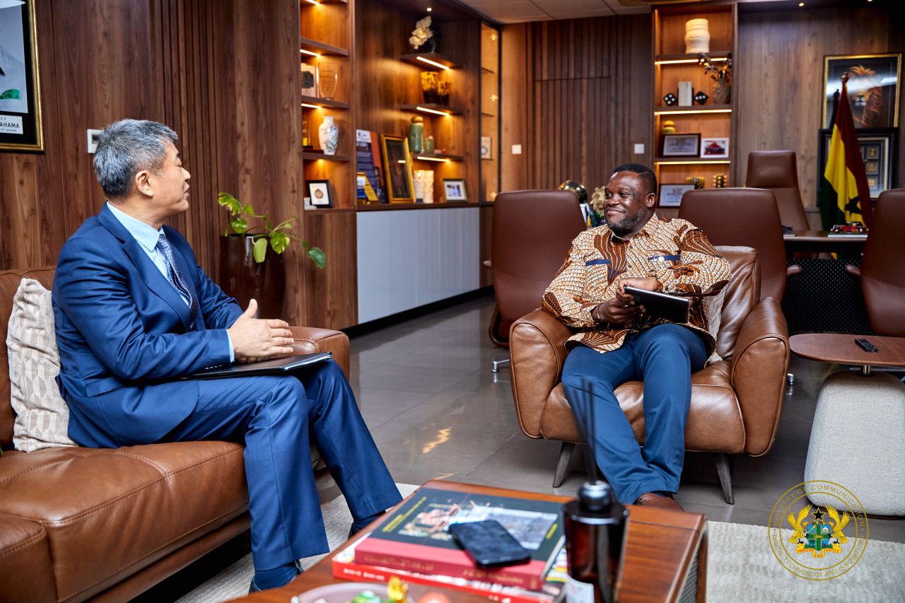 The Minister for Communication, Digital Technology and Innovations, Hon. Samuel Nartey George (MP), has reaffirmed Ghana’s commitment to strengthening strategic partnerships with Chinese technology firms following a courtesy call by the Ambassador of the People’s Republic of China to Ghana, H.E. Cong Song, at his office in Accra.